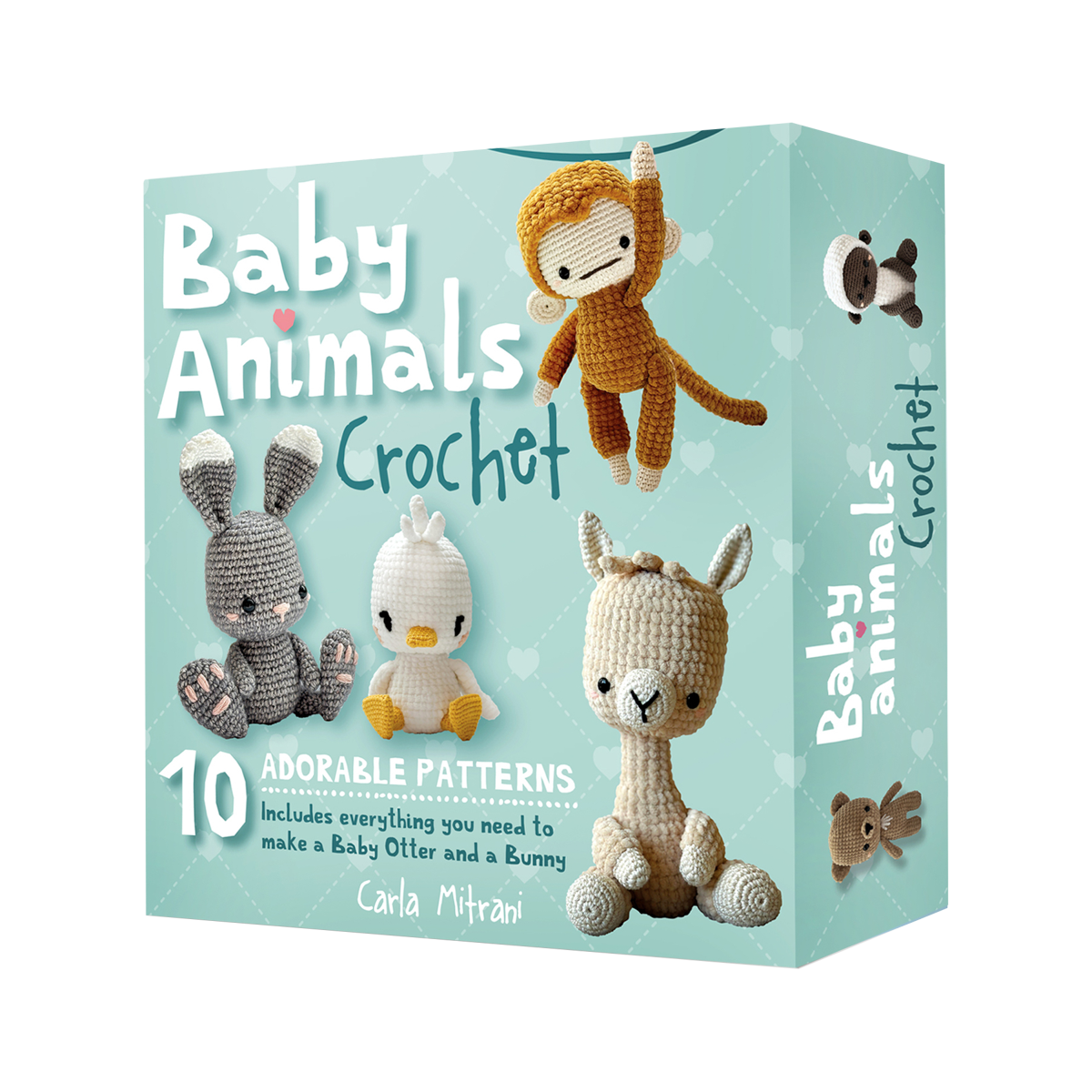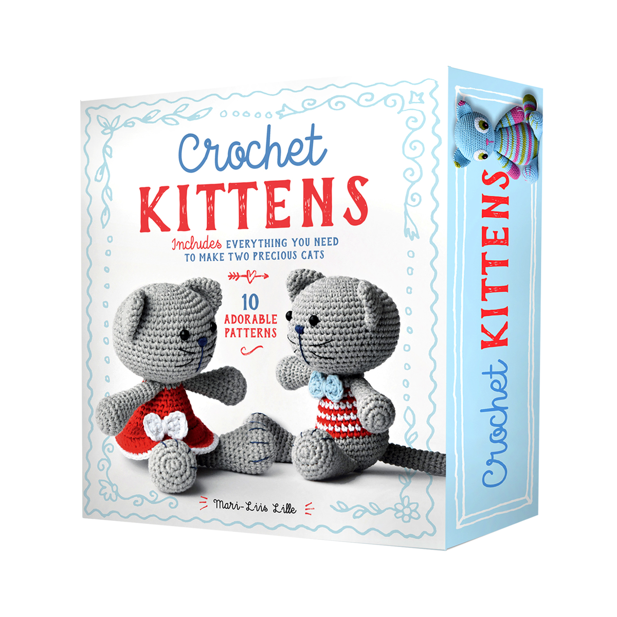 Includes yarn, crochet hook, embroidery needle, plastic safety eyes, stuffing, and embroidery floss to make two models.