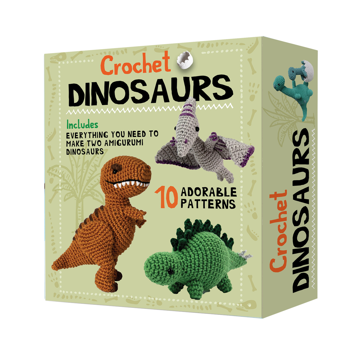 Includes yarn, crochet hook, embroidery needle, plastic safety eyes, stuffing and embroidery floss to make one model.