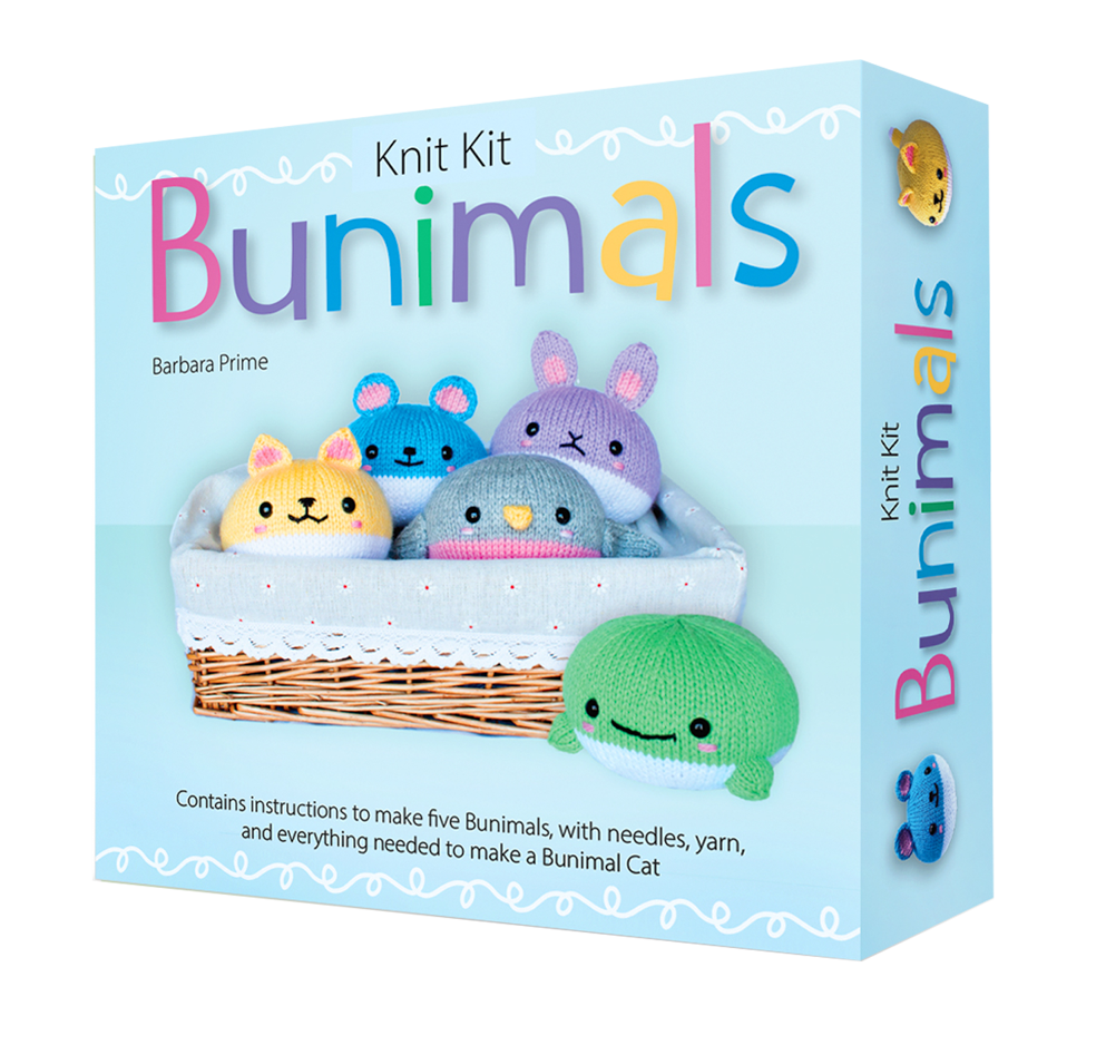 Includes yarn, knitting needles, tapestry needle, safety eyes, and stuffing to make a bunimal cat.